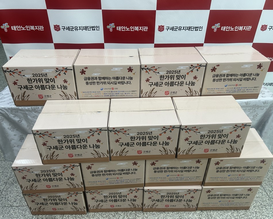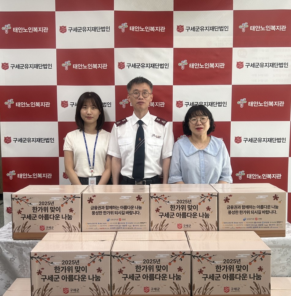 태안노인복지관은 9월 23일(화) 구세군충서지방본영으로부터 '25년 추석 키트' 15세트를 전달받았습니다.