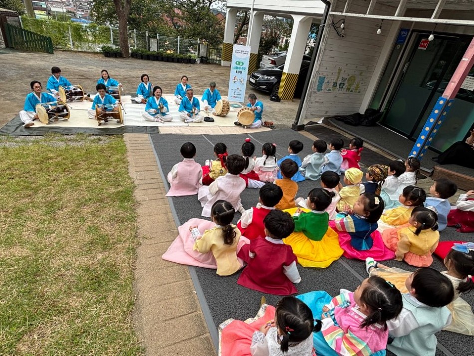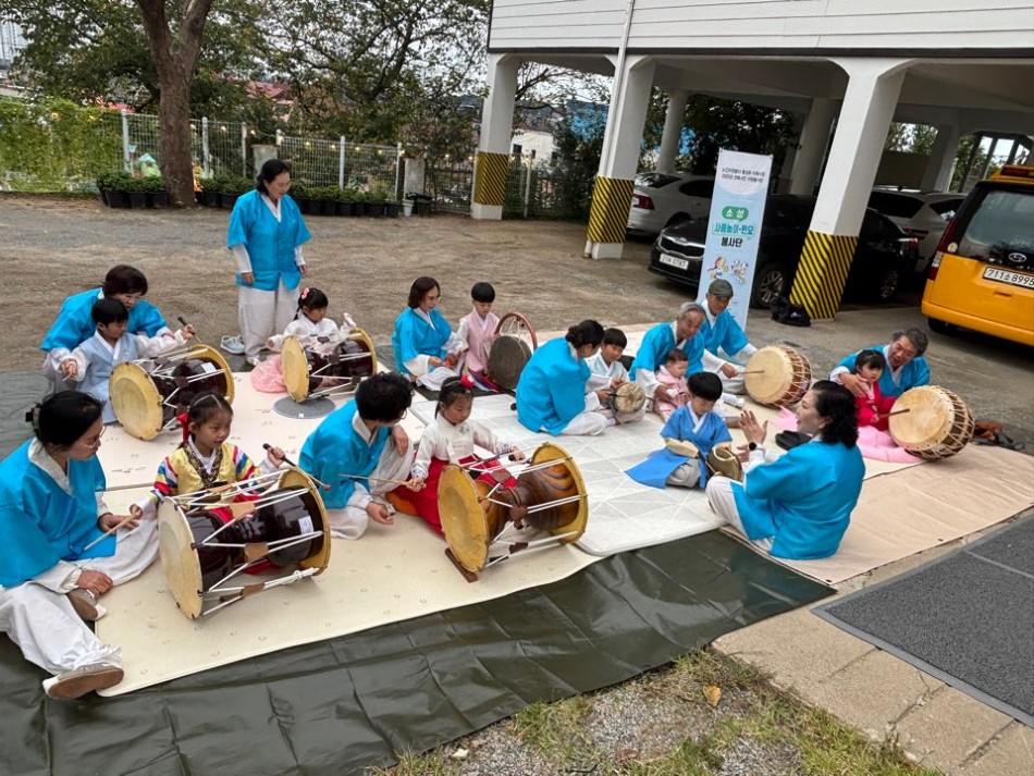 태안노인복지관의 소성봉사단은 9월 30일(화) 태양어린이집 추석맞이 행사에서 사물놀이 공연을 진행 후 아이들에게 사물악기를 연주해 볼 수 있는 체험활동을 진행하였습니다.