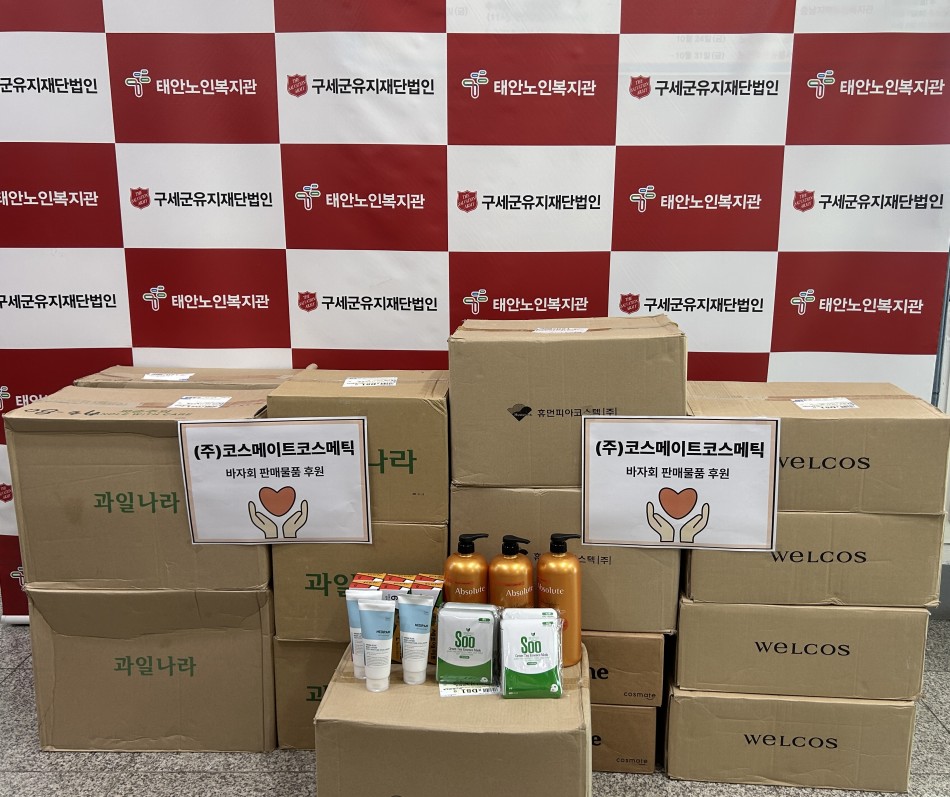 태안노인복지관은 10월 15일(수) (주)코스메이트코스메틱(대표 정희구)로부터 바자회 판매물품(바디로션 외 7종)을 후원받았습니다.