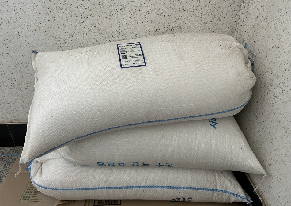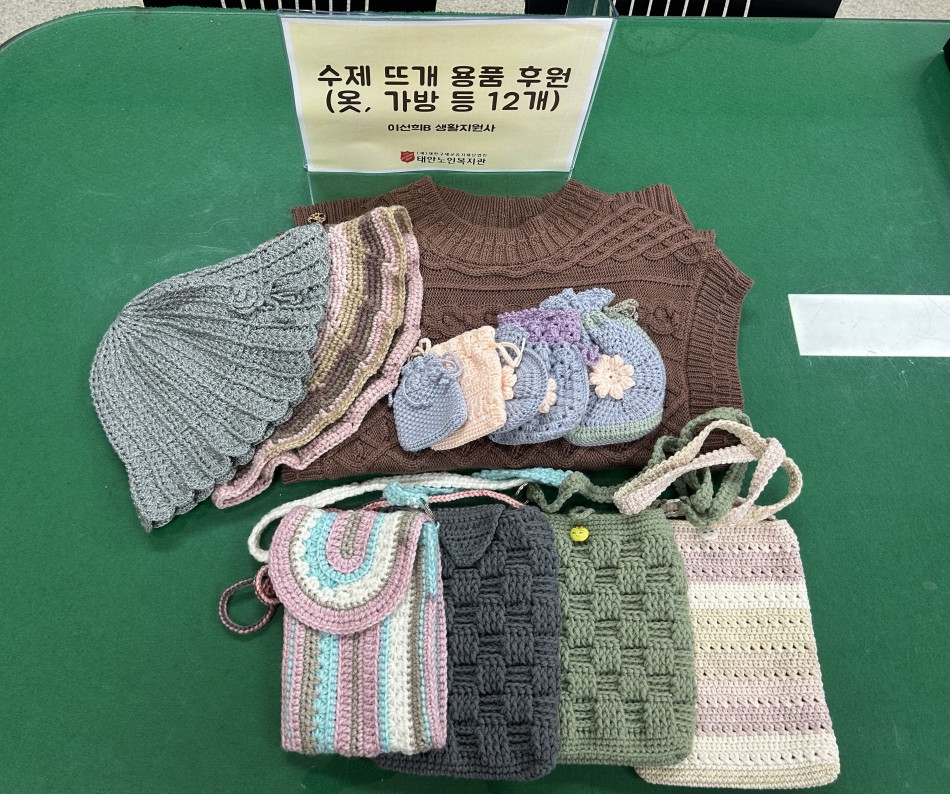 이선희B 생활지원사 수제 뜨개 용품(옷, 가방 등 12개), 천일염(60키로) 후원