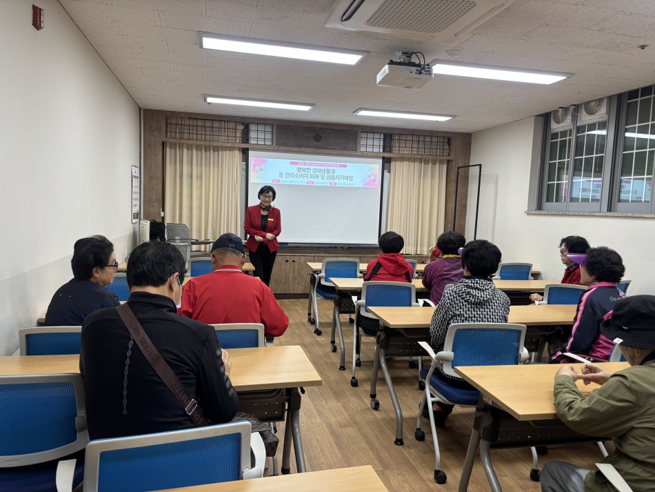 태안노인복지관은 4월 22일(수) 복지관 이용 어르신 20여명을 대상으로 소비자피해예방교육을 충남경제교육센터와 연계하여 진행되었으며, 행복한 경제 생활과 돈 관리, 소비자 피해 및 금융사기 예방으로 지혜롭고 슬기로운 노후생활을 위한 교육을 진행하였습니다.