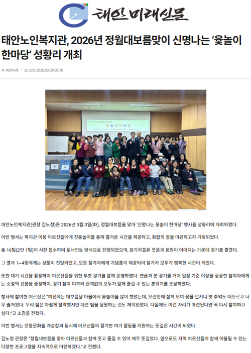 태안노인복지관, 2026년 정월대보름맞이 신명나는 ‘윷놀이 한마당’ 성황리 개최