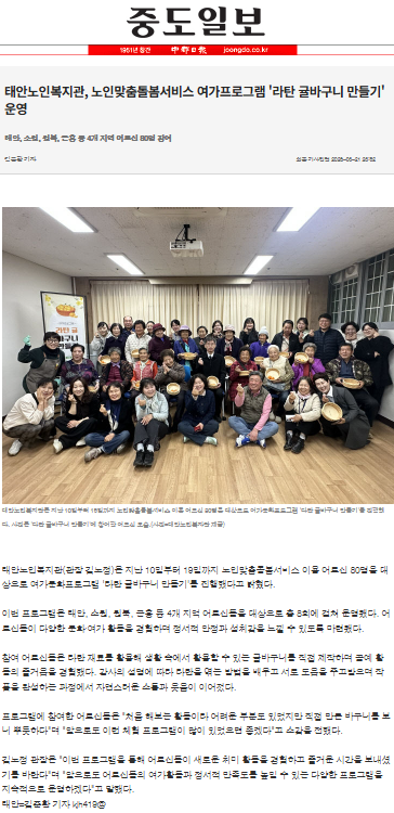 - 이전글태안노인복지관, ‘라탄 귤바구니 만들기’ 프로그램 운영 26.03.30