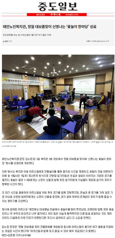 태안노인복지관, 정월 대보름맞이 신명나는 ‘윷놀이 한마당’ 성료