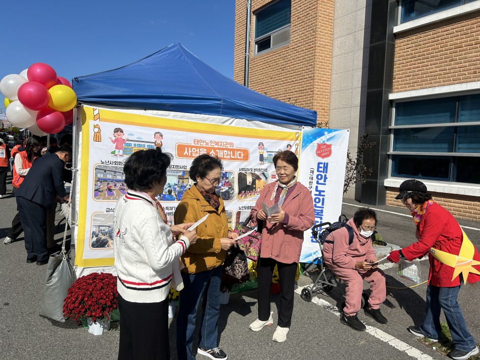 당일 '태안노인복지관 홍보 캠페인'은 태안노인복지관의 리플렛과 노인맞춤돌봄서비스 리플렛을 배부하였고 500여명의 지역주민이 참여한 바자회 당일 진행되어 다수의 지역주민에게 홍보할 수 있었습니다. 앞으로도 태안노인복지관은 어르신들에게 여가와 돌봄을 제공하는 복지관이 되기 위해 노력하겠습니다.