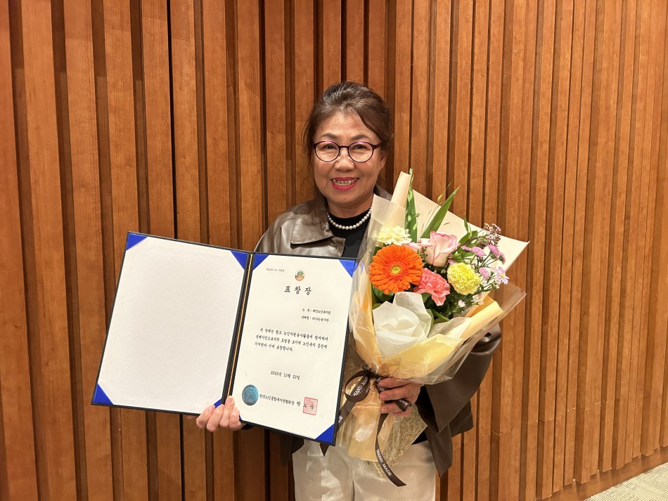 또한, 우리 복지관 홍영옥 이용 어르신께서 노인복지증진 기여로 충청남도노인종합복지관협회장 표창과 선배시민 티나는봉사단이 우수 선배시민 자원봉사단에 대한 한국노인종합복지관협회장 표창을 수상하였습니다. 수상을 진심으로 축하드립니다.