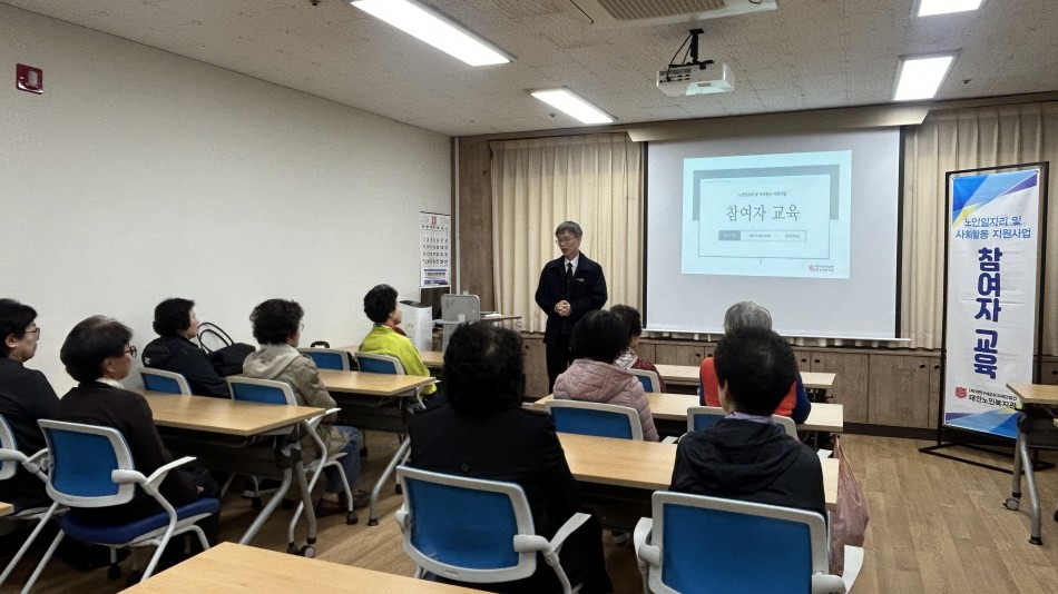 이번 직무교육에는 11월 3일(월) 34명, 11월 4일(화) 11명 등 총 45명이 모두 참여하였으며, 노인일자리 참여자의 원활한 직무수행을 위한 유익한 시간이 되었습니다.