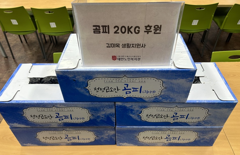 태안노인복지관은 1월 19일(월) 노인맞춤돌봄서비스 김미옥 생활지원사로부터 곰피 20키로를 후원받았습니다.