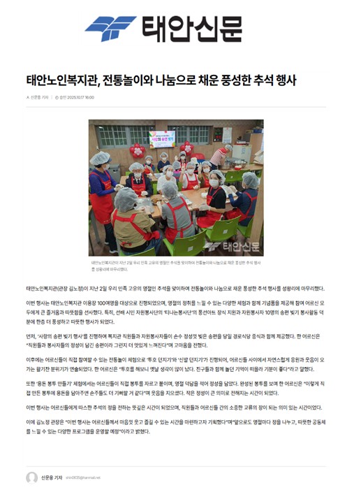 태안노인복지관, 전통놀이와 나눔으로 채운 풍성한 추석 행사