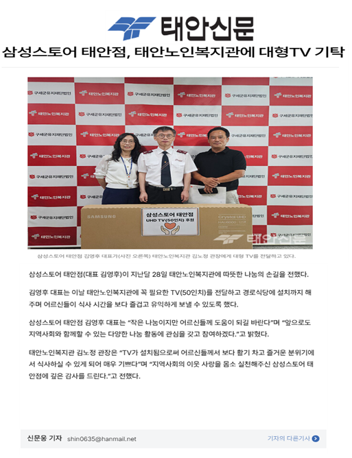 태안노인복지관, 삼성스토어 태안점, 태안노인복지관에 대형TV 기탁