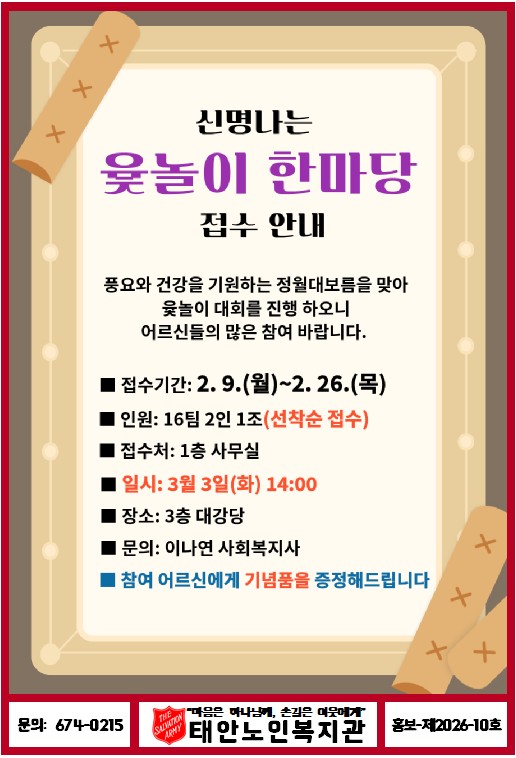 2026년 신명나는 윷놀이 한마당 접수하오니 많은 참여 바랍니다:)